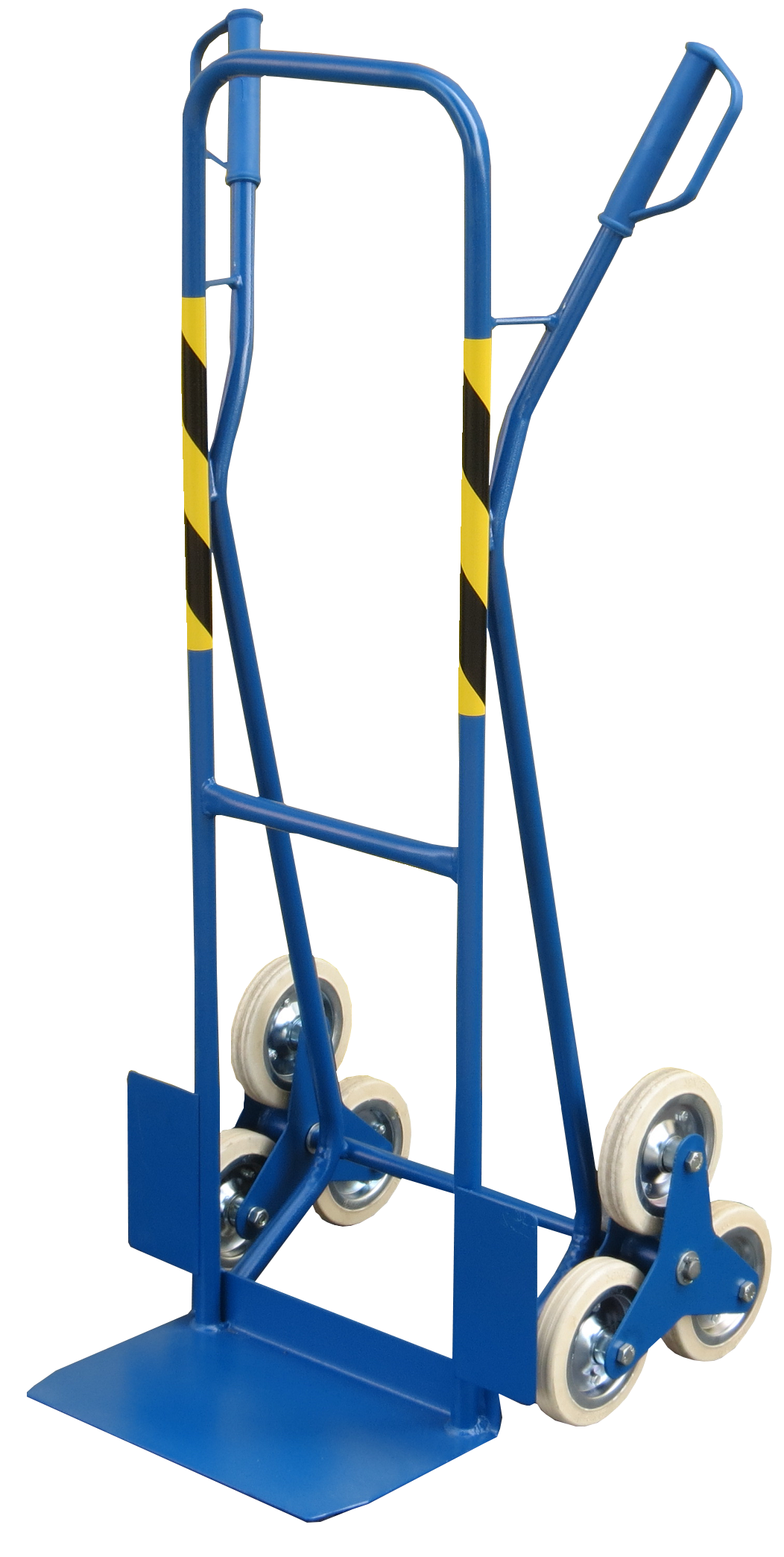 Can this truck also be used on flat surfaces? Yes — the stair-climbing wheels work just as well on flat floors, although for purely flat-surface use a standard two-wheel model may be lighter and more economical.