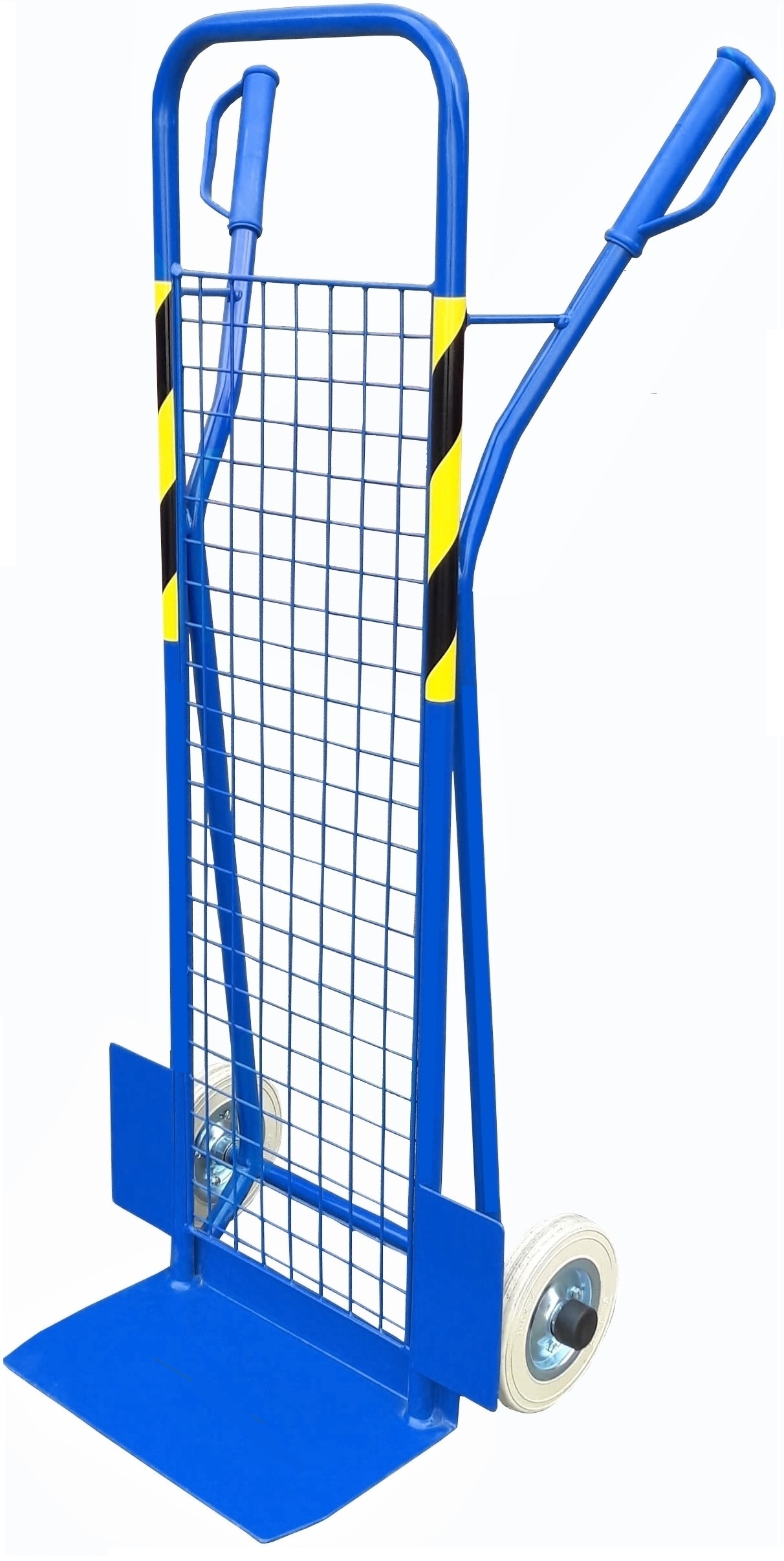 The ALOŚ III Mesh Back is a two-wheeled hand truck designed for the stable and convenient transport of parcels, cartons, appliances, and sacks. The steel wire mesh back panel (3 mm wire, 40 × 40 mm grid) keeps smaller items securely in place, preventing them from shifting or falling during transport.